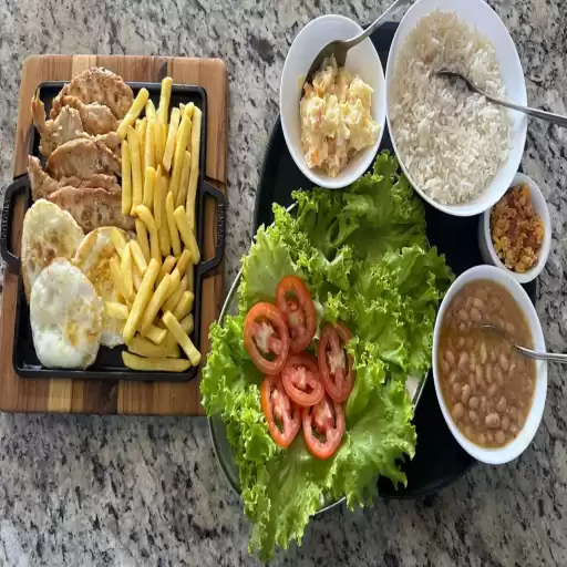 ARROZ,FEIJAO ,BATATA FRITA,FAROFA.