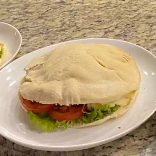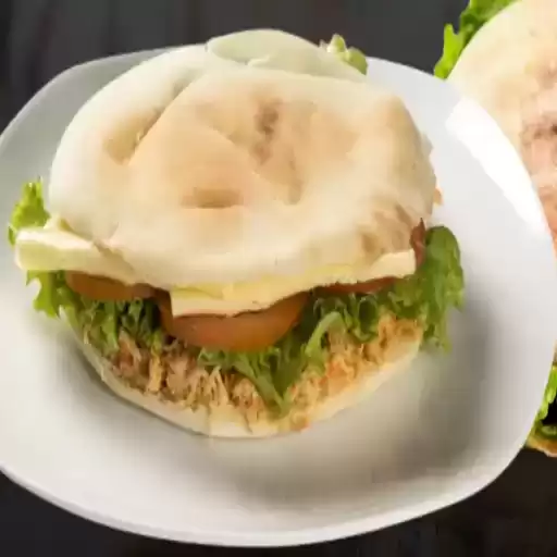 pao especial, coxa de frango desossada e empanada, mussarela, alface, tomate e maionese