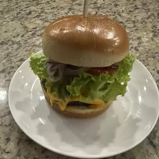 pao especial, 2 hamburguer de 100g, 2 cheddar,bacon fatiado, picles, cebola, onions rings e molho especial