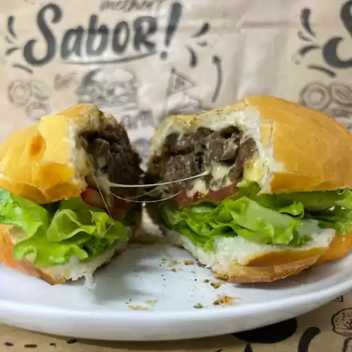 PAO ESPECIAL, 2 HAMBURGUER DE 100 GRAMAS, PICLES, MUSSARELA, CHEDDAR, CEBOLA PICADINHA, MOLHO ESPECIAL.
