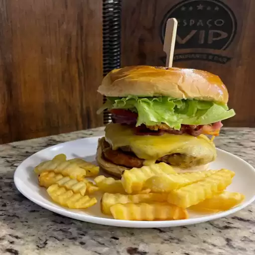 PÃO ESPECIAL, HAMBURGER 160G VEGETAL, MUSSARELA, TOMATE, ALFACE, PICLES, MOSTARDA, KETCHUP E MAIONESE